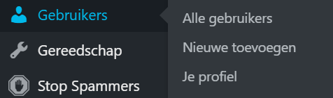 Firstly, assuming you logged in with your own login credentials, you need to navigate to the Users panel. Thankfully you don’t have to speak the language to find this, as WordPress helpfully use a standard set of icons for the dashboard menu items. You’re looking for the menu option that uses the person icon. Here’s how it looks in English, French, and Dutch.