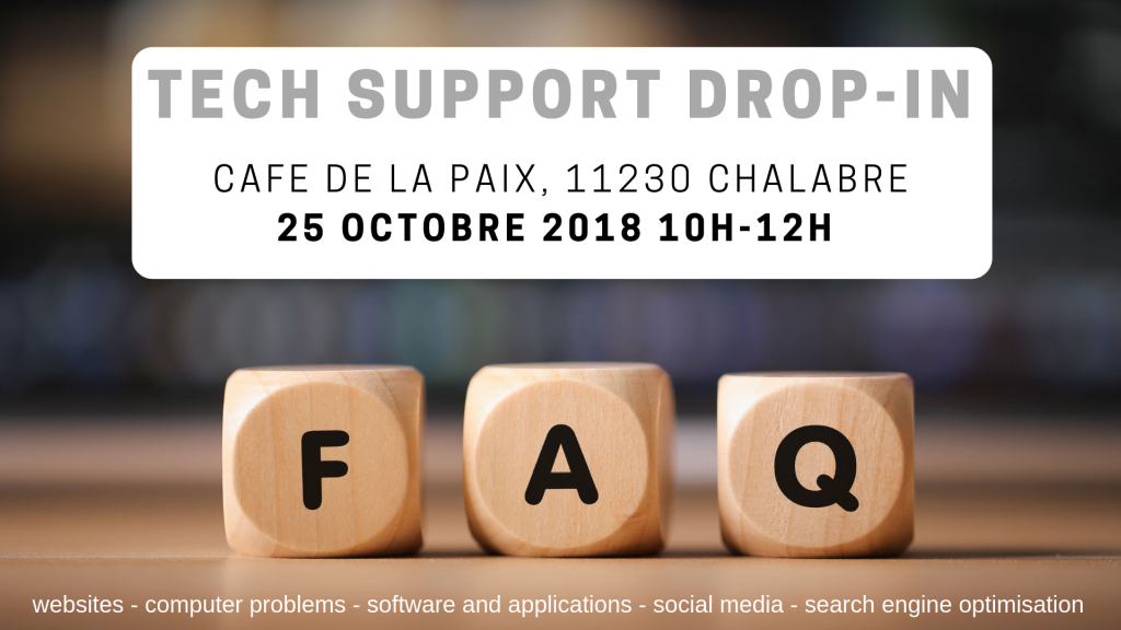 Here are the list of dates/times for tech support drop-in sessions this year (2019). If you are interested in coming along, you can either drop in (since that’s the idea) or confirm in advance either via email or by signing up via the linked Facebook event. 28 January, 2019 10h-12h, CafĂ© de la paix, 11230…